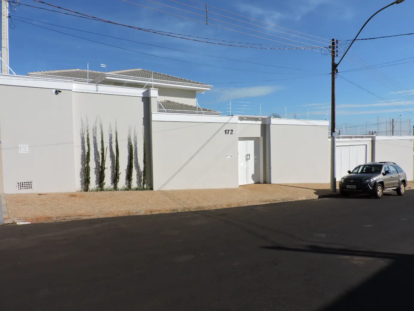 Este projeto residencial apresenta uma casa térrea com fachada fechada, pensada para oferecer privacidade, segurança e uma estética urbana contemporânea. O fechamento frontal contínuo cria uma leitura visual limpa e discreta, ao mesmo tempo em que protege os ambientes internos da exposição direta à rua.